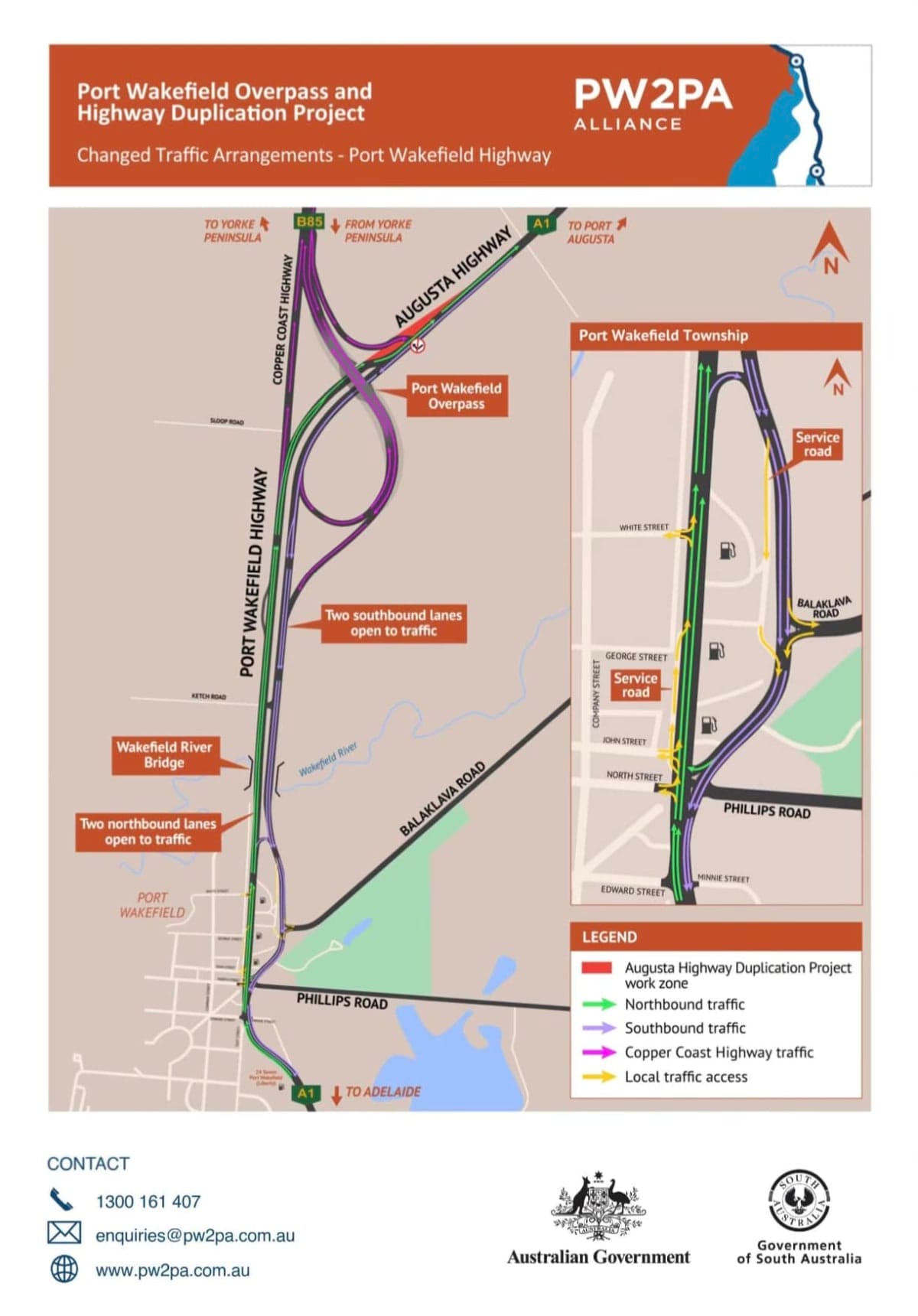 "As part of the 124.5 million Port Wakefield Overpass and Highway Duplication Project, Port Wakefield Highway will be open to traffic in its upgraded configuration," a Port Wakefield to Port Augusta Alliance spokesperson said.