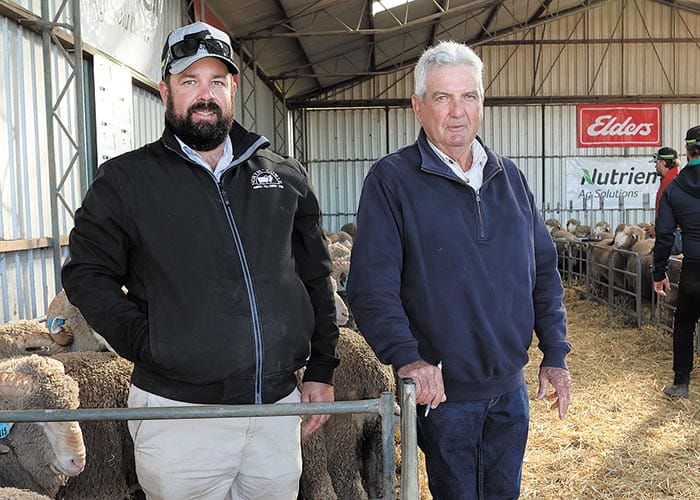 The 2023 top-priced ram was purchased by wool classer Paul Cousins on behalf of the Vandeleur family of Rice’s Creek Poll Merinos, Saddleworth and Tintinara.