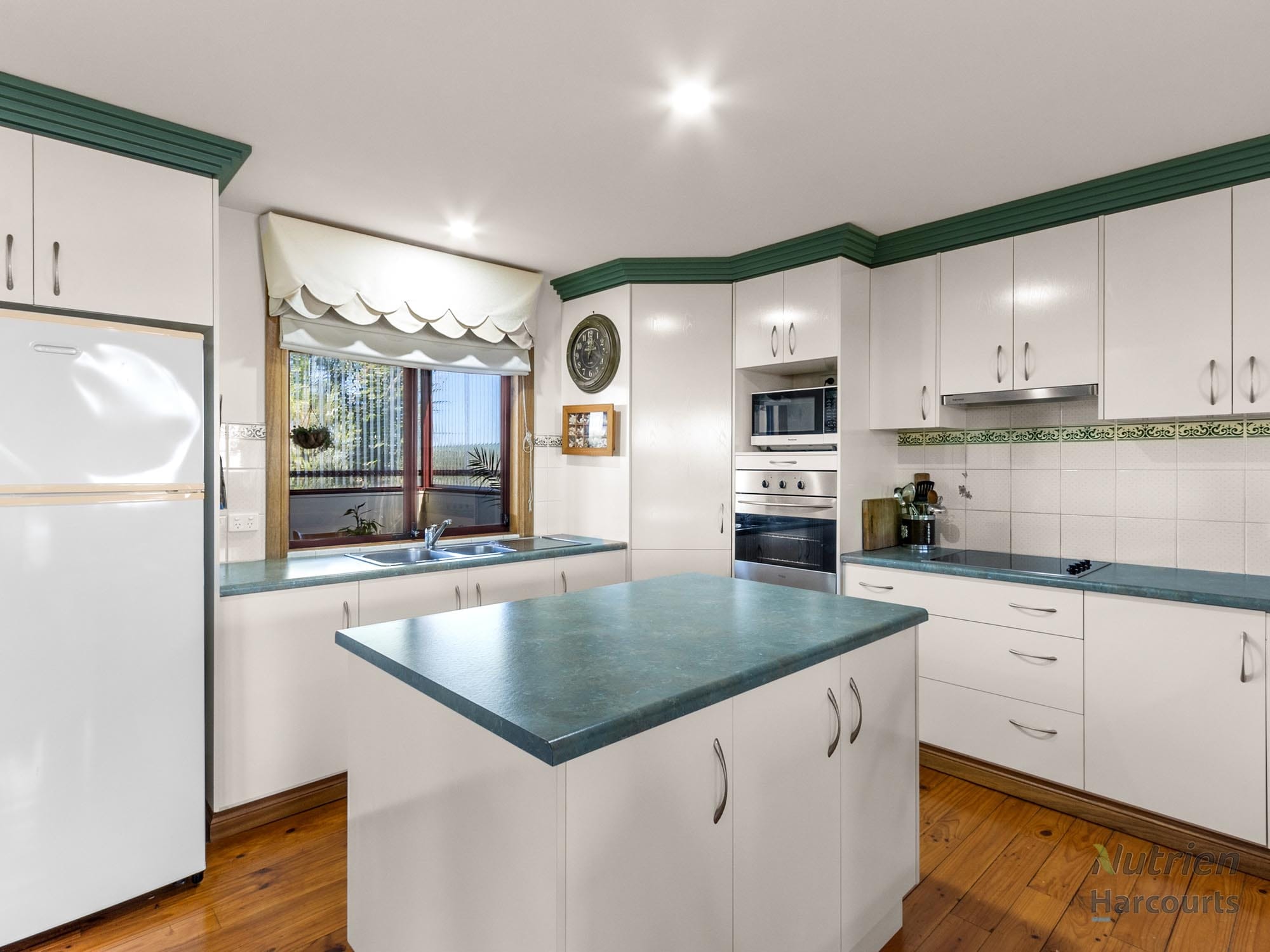 Upstairs is the heart of the home, with an open-plan kitchen, dining and living area that flows directly onto a full-width balcony — the perfect spot to relax and soak in the view.