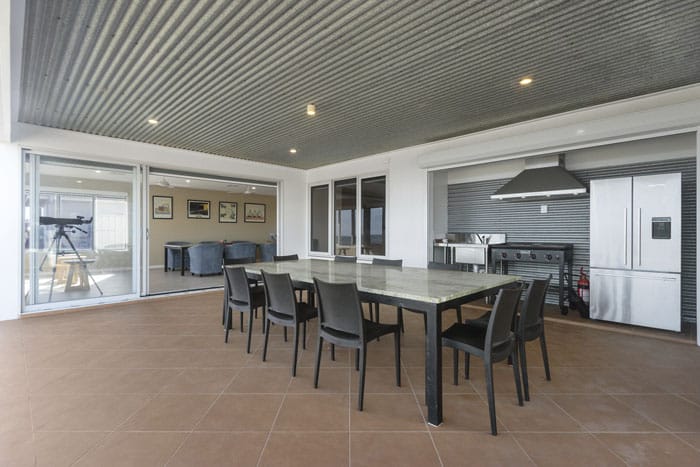 “The hideaway barbecue area or ‘grill garage’ is a purpose-built outdoor entertaining area complete with a rangehood, sink, and roller door, creating the ultimate secure barbecue station that tucks away when not in use.