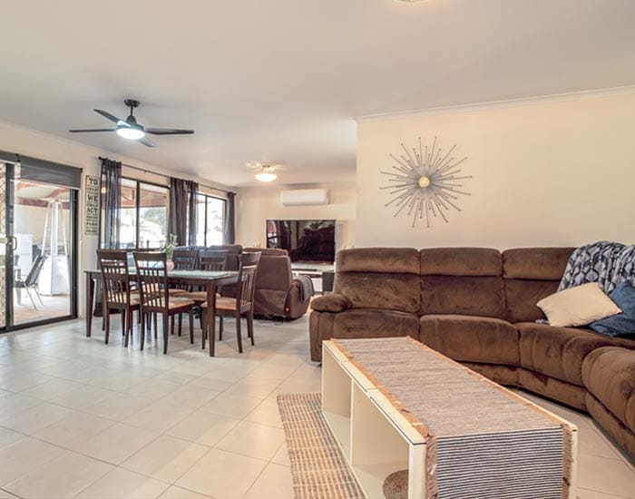 A rainwater tank and 3.5kW solar system add to the home’s appeal, combining comfort with efficiency.