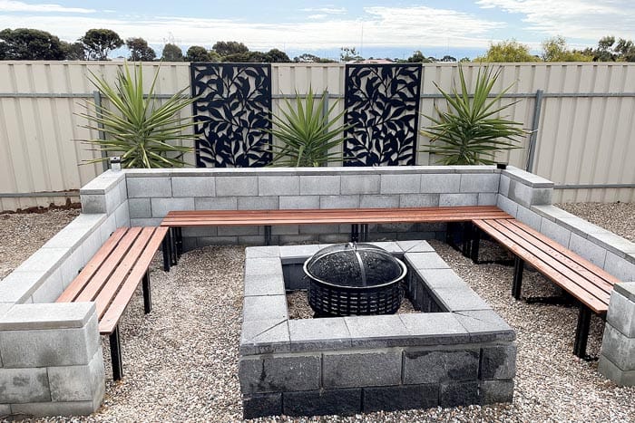 “And at the rear, there’s a cement block firepit — great for entertaining at night.”