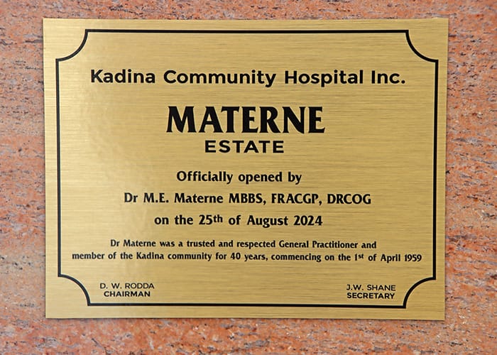 MATERNE Estate, Kadina, was officially opened on Sunday, August 25. The four independent living units, designed for retirees, were made possible thanks to funding from the Kadina Community Hospital Board. The board purchased land on the corner of...