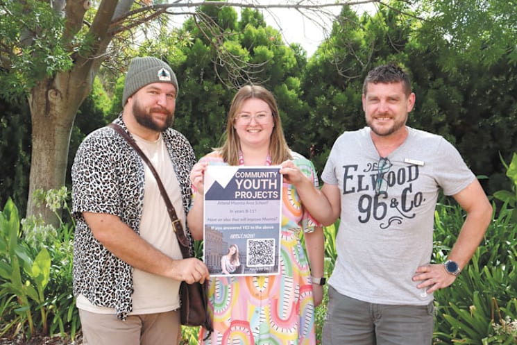 COMMUNITY PROJECTS... Moonta Progress Association president Matthew Stock, Moonta Area School representative Tayla Etheridge and Yourtown’s Chad Farrell are excited about the potential opportunities for the community after launching their Community Youth Projects program recently.