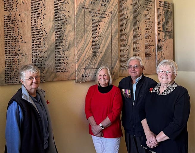 PROUD MOMENT... The children of Private Norman Jones view their father’s name on the Honour Roll: Lynlee Edwards, Helen Crosby, Trevor Jones, Kaye Videon.