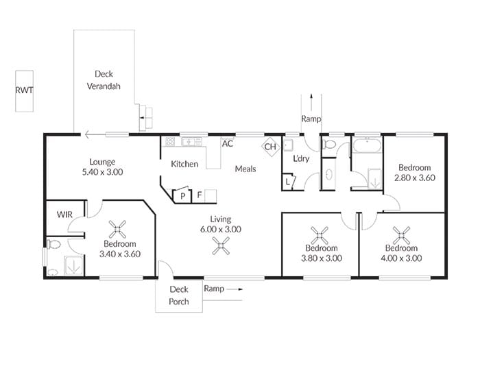 There are four bedrooms in total, with the main offering a walk-in robe, ensuite and ceiling fan.