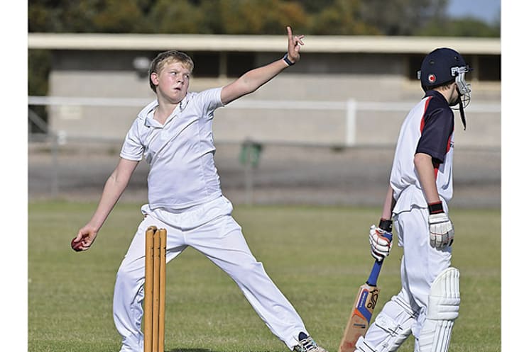 LYPCA JUNIOR COLTS... Jimmy Honner, Minlaton, concentrates on the batter as he comes in to bowl against Yorketown.