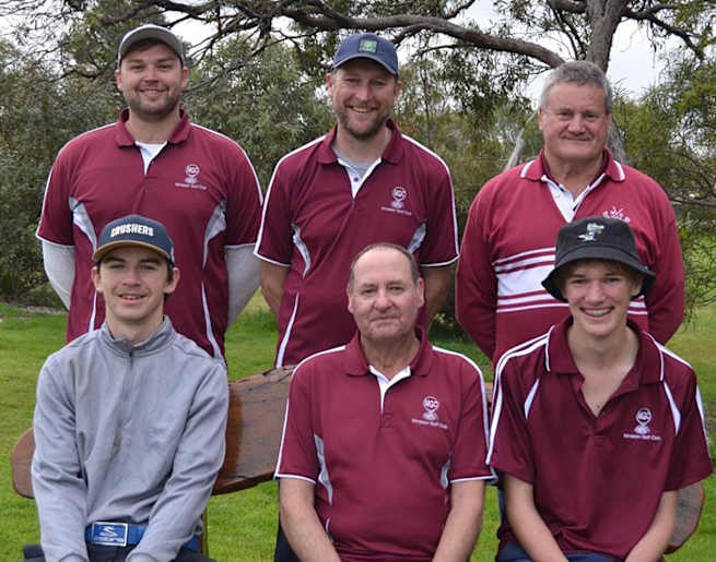 MINLATON CHAMPIONS... Minlaton Golf Club 2025 men’s championships runners-up, back: A grade Jason Dreckow, B grade Leigh Rothe, C grade Rob Lucas; and winners, front: A grade Noah McDonald, B grade Brian Watters, C grade Elijah Rothe.