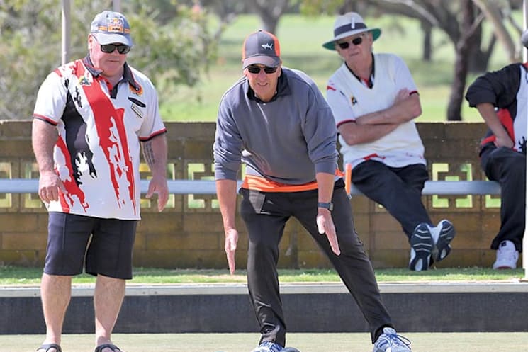 NYPBA SATURDAY DIV I... Skippers Richard James, Maitland, and Kevin Robinson, Port Hughes, watch a bowl come into the head.