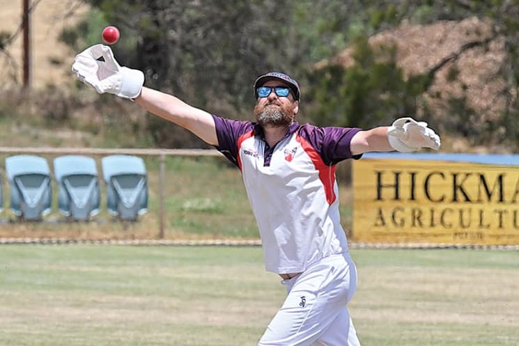 LYPCA A GRADE... Yorketown wicketkeeper Brad Twartz leaps to field a throw from a teammate against Eastern District.